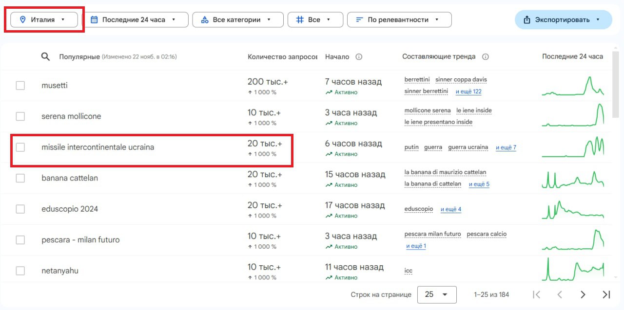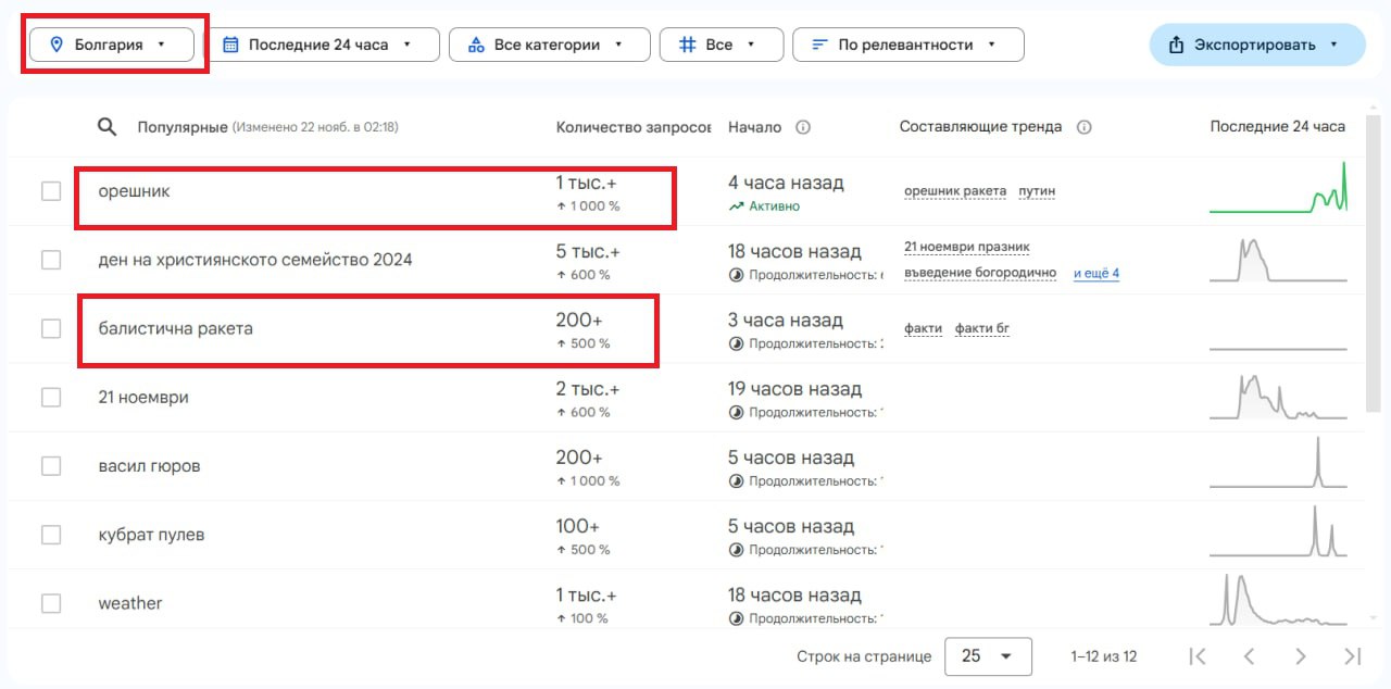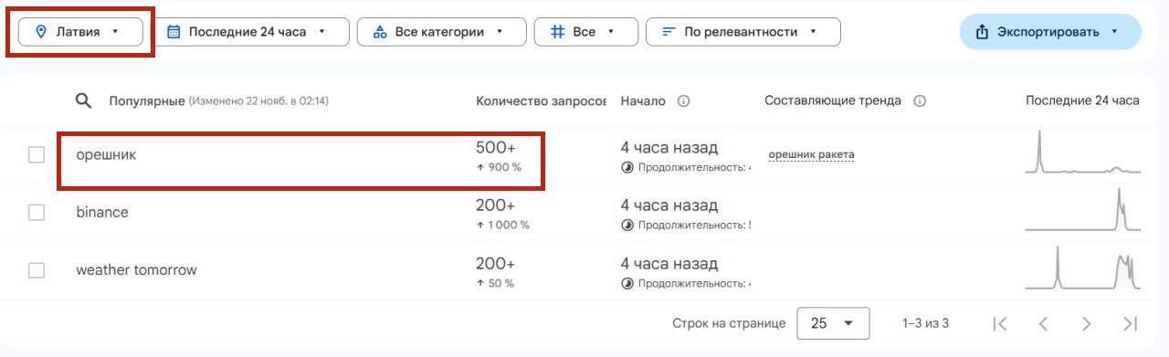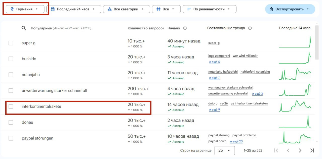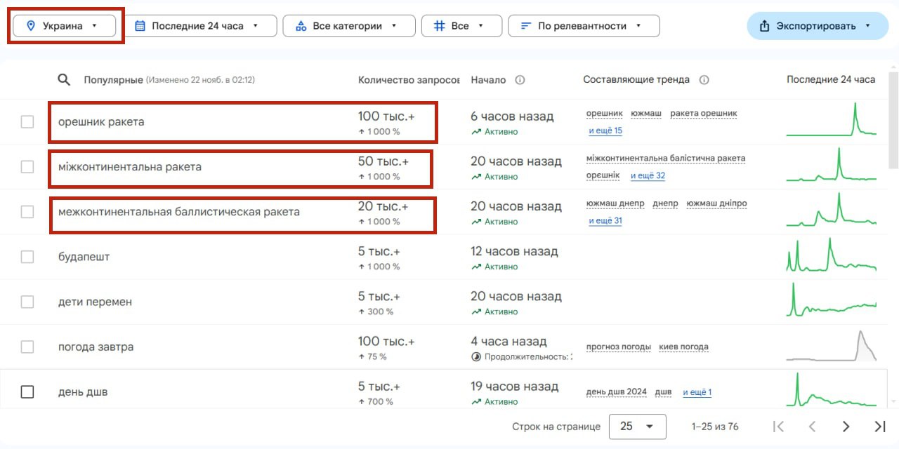 В разных странах мира выросло число поисковых запросов, связанных с новой российской баллистической ракетой «Орешник». Это следует из данных Google Trends.