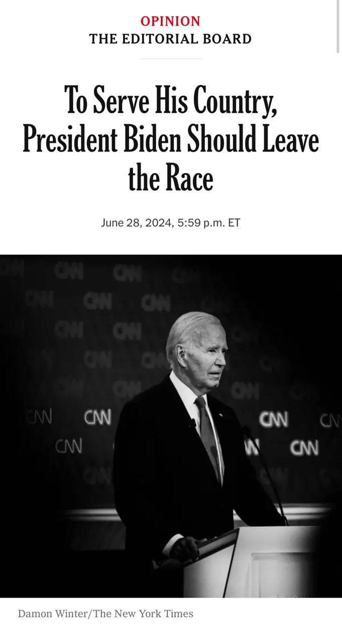 πΊπΈΠ ΡΠΏΠΎΡ ΠΠ΅Π»ΠΎΠ³ΠΎ Π΄ΠΎΠΌΠ° ΠΈ Π΄Π΅ΠΌΠΎΠΊΡΠ°ΡΠΎΠ² New York Times ΠΏΡΠ±Π»ΠΈΡΠ½ΠΎ ΠΏΡΠΈΠ·Π²Π°Π» ΠΠ°ΠΉΠ΄Π΅Π½Π° Π²ΡΠΉΡΠΈ ΠΈΠ· ΠΏΡΠ΅Π΄Π²ΡΠ±ΠΎΡΠ½ΠΎΠΉ Π³ΠΎΠ½ΠΊΠΈ ΠΈ Π½Π΅ ΠΈΠ·Π±ΠΈΡΠ°ΡΡΡΡ Π½Π° Π²ΡΠΎΡΠΎΠΉ ΡΡΠΎΠΊ.