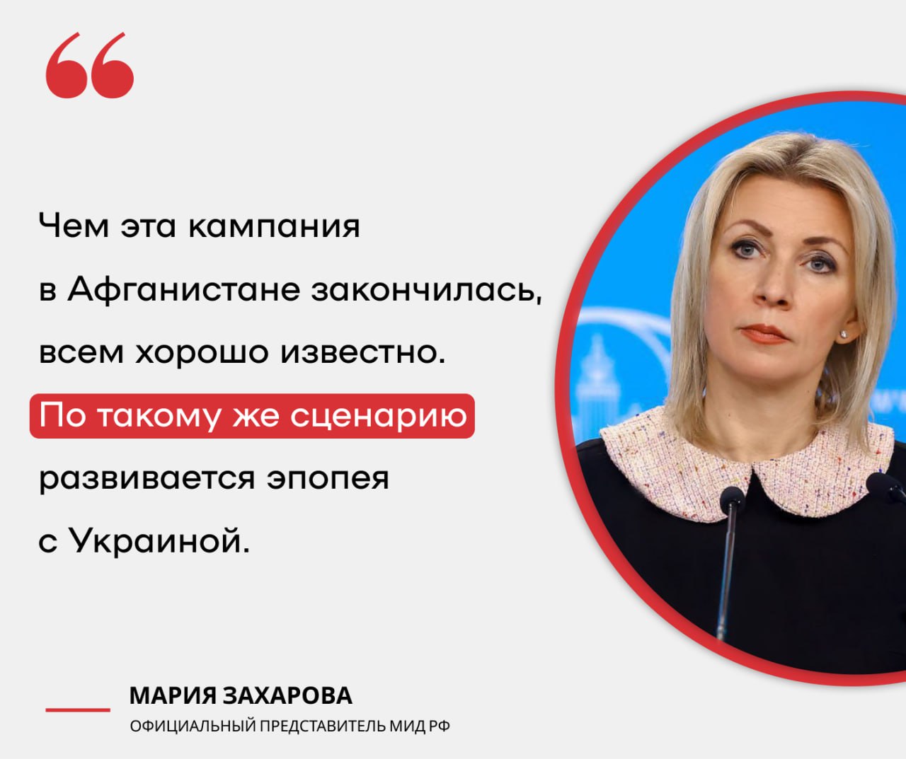Захарова: Киев получает не меньше поддержки от США, чем получал в своё время Афганистан