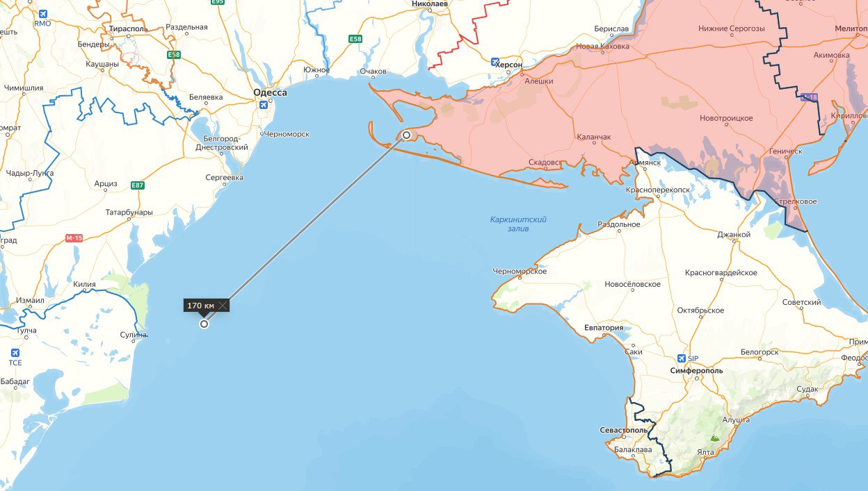 Разведывательный БПЛА ВС РФ проводит разведку острова Змеиный в Чёрном Море. Минимальное расстояние до позиций более
