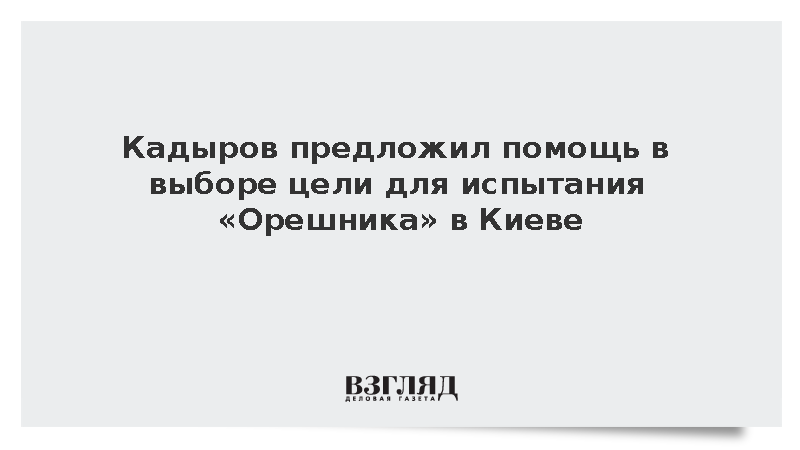 Глава Чечни Рамзан Кадыров предложил свою помощь в выборе объекта для эксперимента с баллистическим комплексом средней дальности «Орешник» в Киеве.