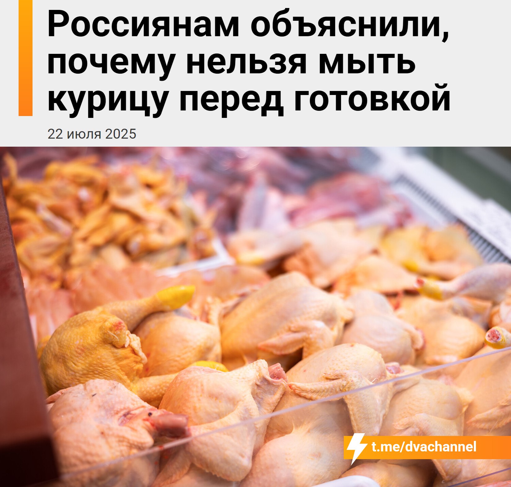 На мясе есть опасные бактерии, например, сальмонелла и кампилобактер. При мытье они разлетаются с брызгами и попадают на посуду, стол и другие продукты.