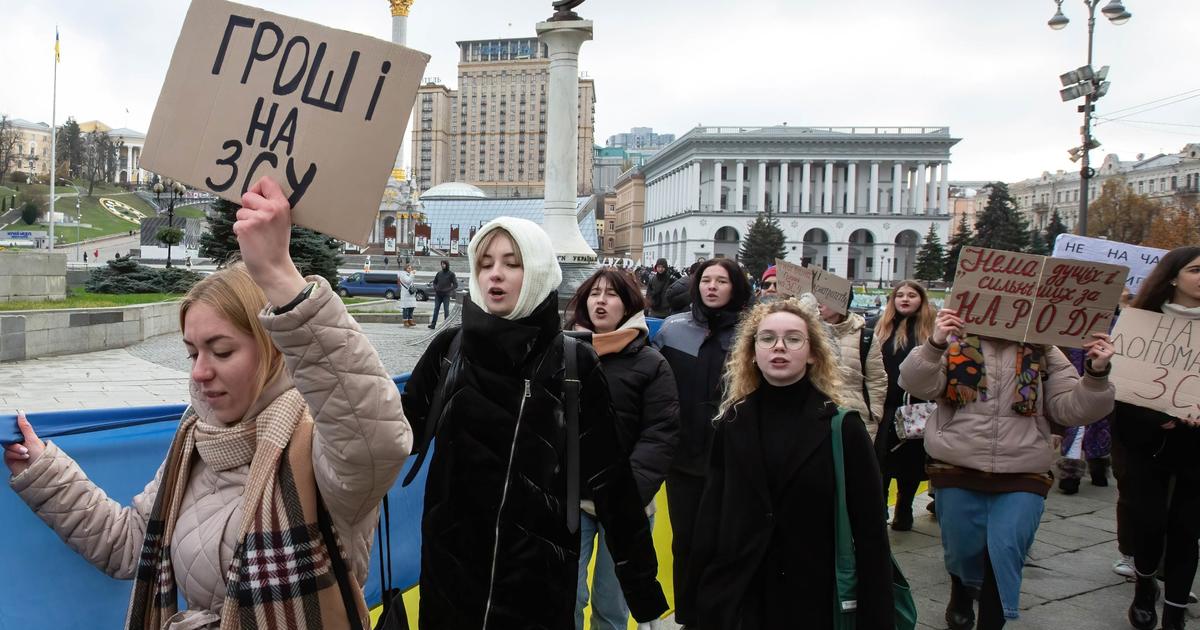 Un samedi à 10 heures, la neige fond dès qu'elle se pose et le vent frigorifie tout ce qu'elle infiltre. Bravant le temps, des manifestants se tiennent sur les marches de l'administration de la ville de Kiev. Les protestataires sont jeunes – des étudiants voire des adolescents. Ils sont « 300 manifestants aujourd'hui », indique Ivana, une membre de l'ONG ukrainienne Centre pour les libertés civiles. « Il est arrivé qu'ils soient plus de 800 », ajoute-t-elle. Ivana « monitore » ces manifestations depuis leur commencement treize semaines auparavant à Kiev et dans d'autres villes. La foule des manifestants est plus conséquente qu'il n'y paraît alors que la loi martiale proscrit tout rassemblement sur la voie publique. Les autorités ukrainiennes laissent faire ; la manifestation a été déclarée et la « police du dialogue », des policiers chargés de désamorcer les tensions, est forcée de constater le calme de l'assemblée.