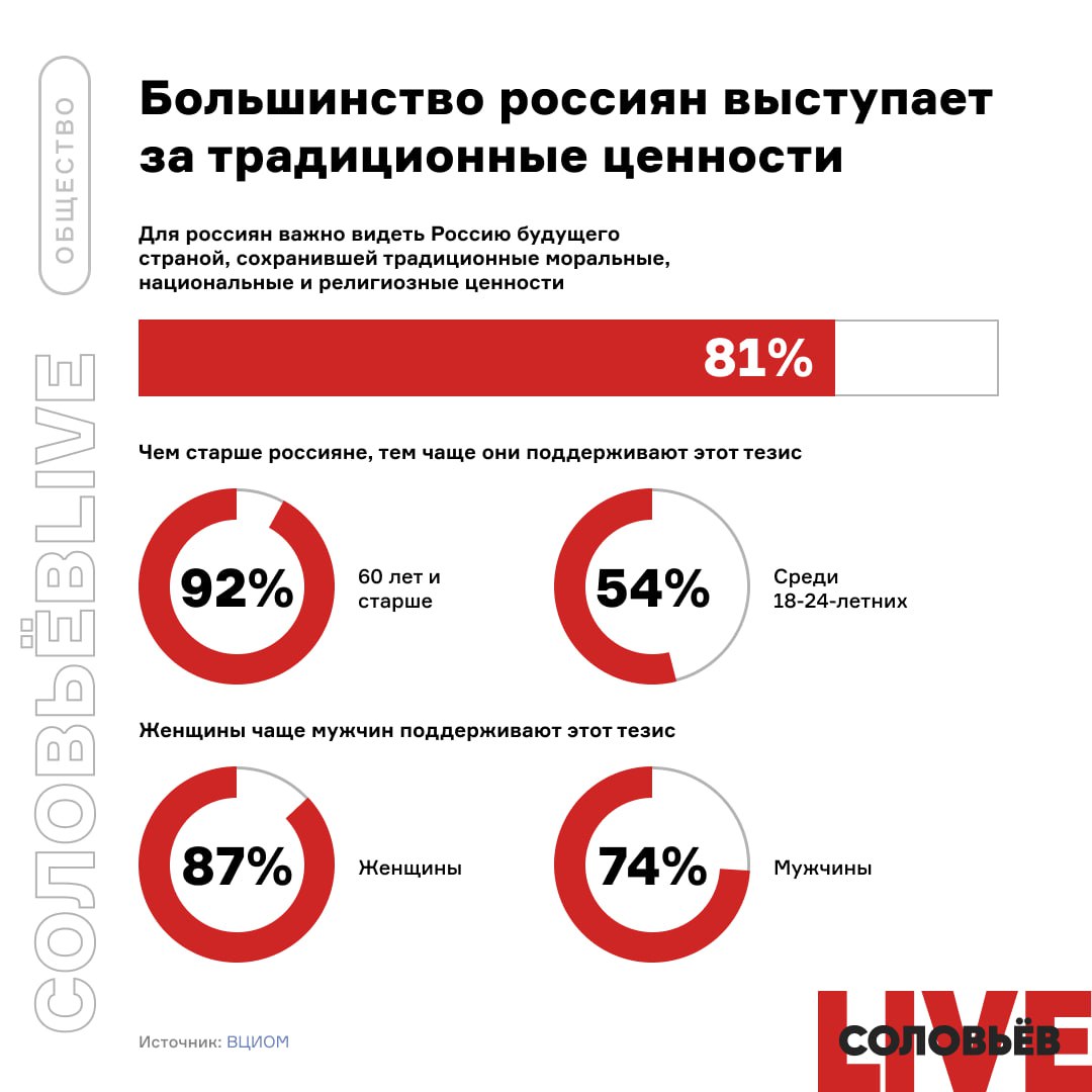❗️Большинство россиян выступает за традиционные ценности