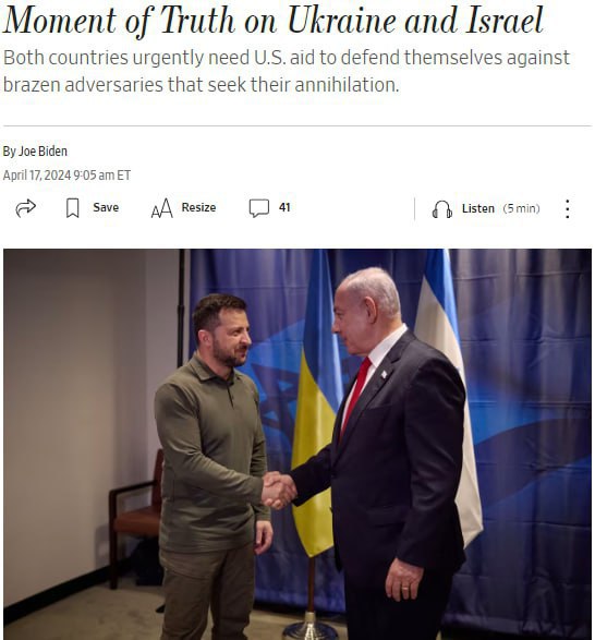 Байден снова просит конгресс утвердить его запрос на помощь Украине и Израилю. На этот раз — через статью в The Wall Street Journal.