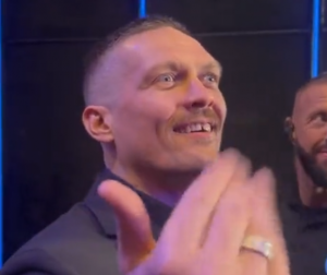 Oleksandr Usyk's reaction to Tyson Fury hurling insults at him and his team before their press conference today…