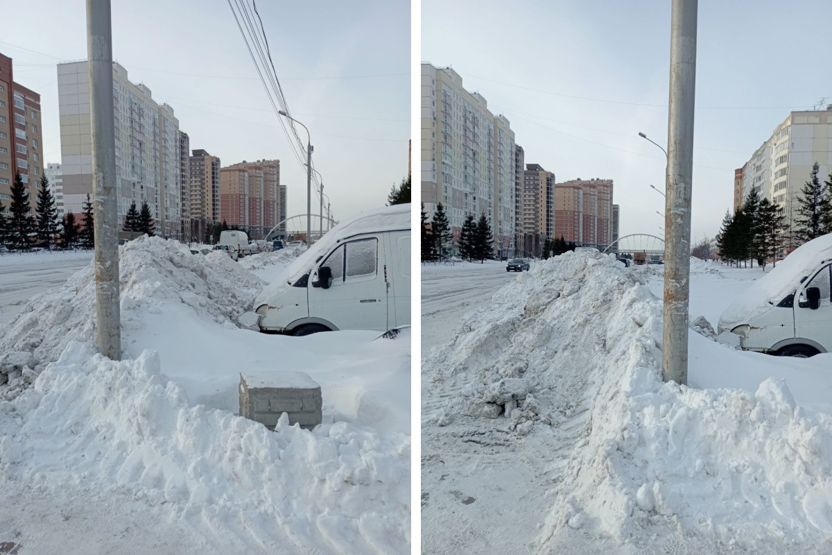 «Нагребли кучи и запрещают детям там играть:» в Новосибирске выросли импровизированные горки из сугробов — фото с неубранных улиц