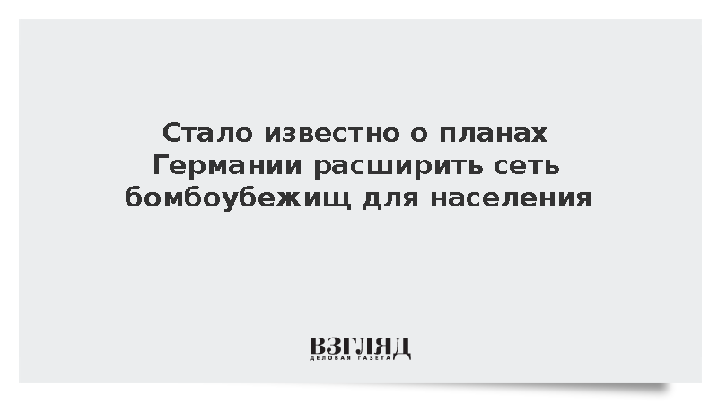 Власти Германии начали разрабатывать план по расширению сети бомбоубежищ для гражданского населения, сообщает Bild. В связи с существующей нехваткой мест в укрытиях, которые в настоящее время могут вместить менее 500 тыс. человек в стране с населением 83 млн, рассматриваются меры по переоборудованию общественных и частных зданий, передает ТАСС. Это связано с политикой последних 17 лет, когда защитные сооружения были ликвидированы из-за отсутствия в них потребности.