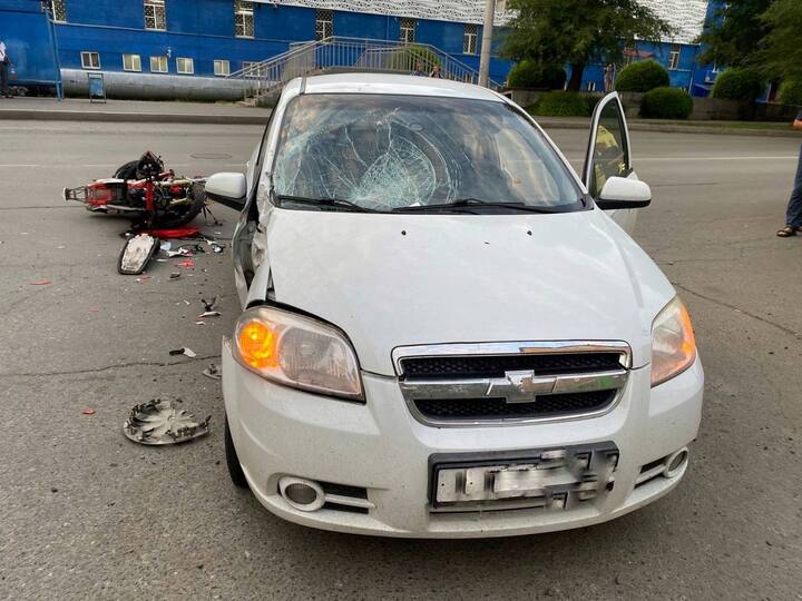 В Абакане накануне вечером произошло ДТП с пострадавшими. Около 169-го лома по улице Советской столкнулись автомобиль Zaz Vida и мотоцикл.