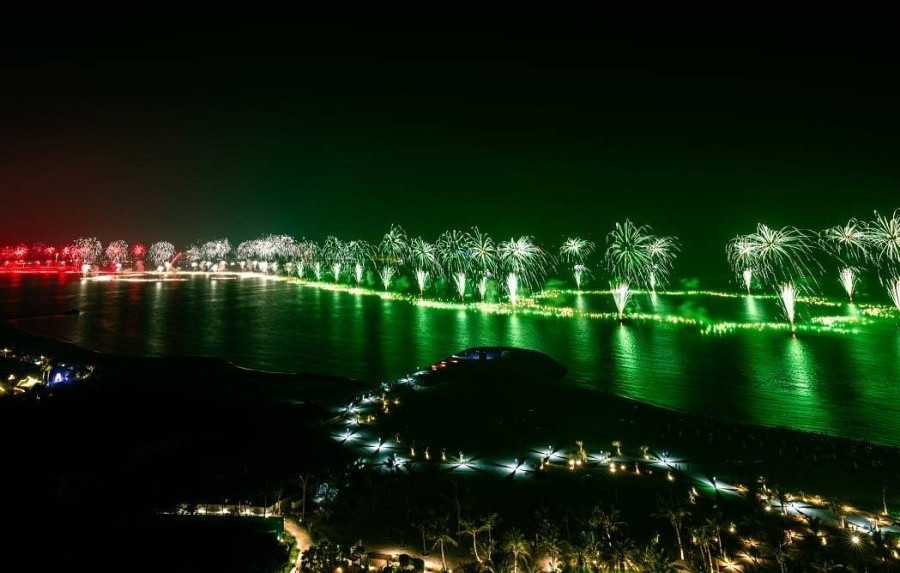 Местом проведения шоу стала береговая линия длиной 4,5 км между искусственным архипелагом Аль-Марджан и районом Аль-Хамра. Помимо установленных на воде фейерверков, в нем были задействованы более 1 тыс. пиротехнических и светодиодных дронов, а также легкомоторные самолёты, выполнявшие фигуры высшего пилотажа.