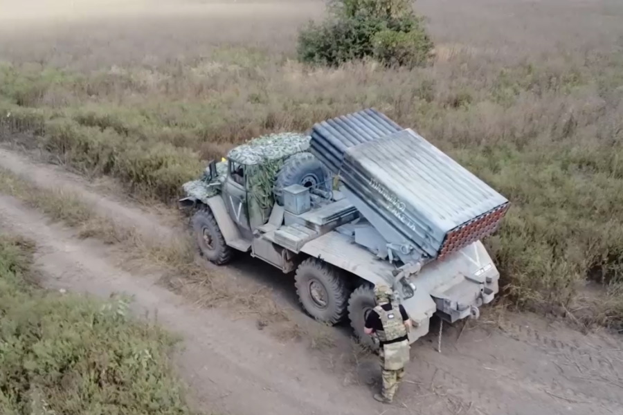 На место выдвинулись расчеты РСЗО «Град» тульского производства, где нанесли огневое поражение противнику 122-мм неуправляемыми реактивными ракетами.