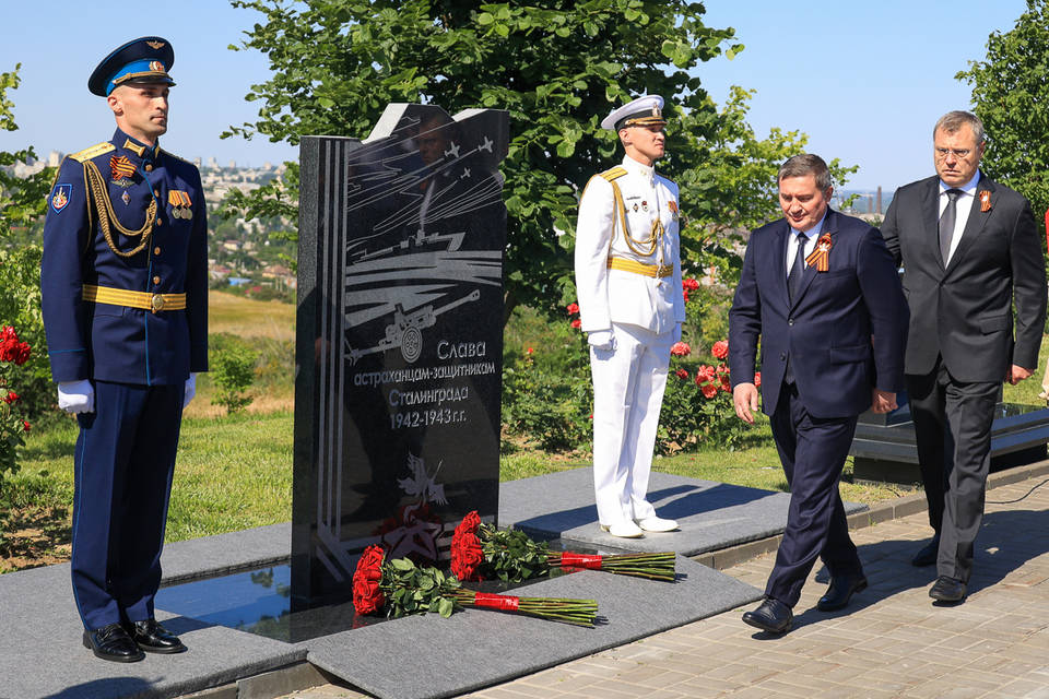 Сегодня, 22 июня, в Волгограде на Мамаевом кургане был открыт памятник астраханцам–защитникам Сталинграда. Высота стелы вместе с гранитным постаментом – 1,85 м. Участие в торжественной церемонии приняли губернатор Волгоградской области Андрей Бочаров и губернатор Астраханской области Игорь Бабушкин. Честь открыть памятник была предоставлена офицерам Астраханского гарнизона. Мероприятие стало частью программы празднования 80-летия Сталинградской Победы.