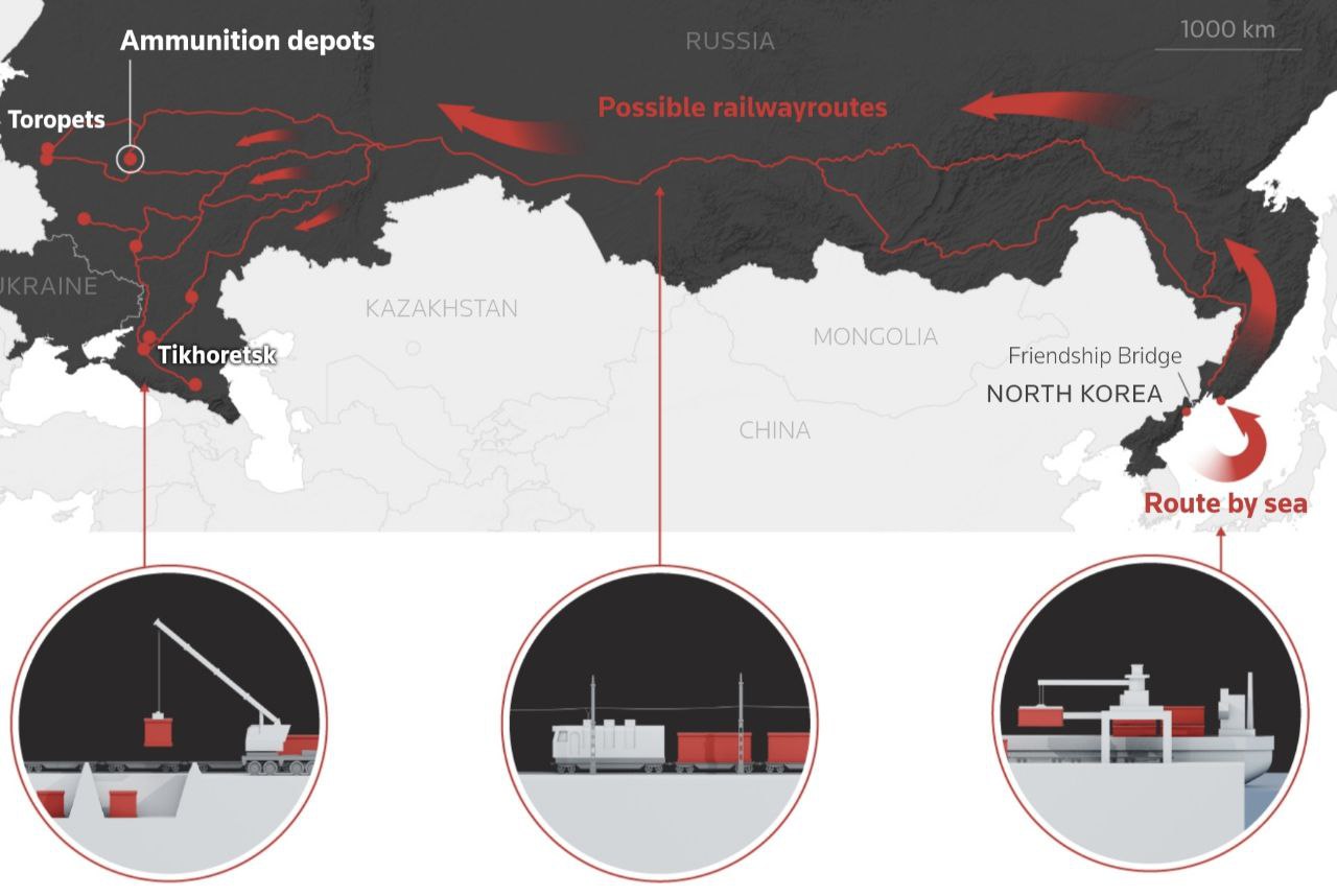 Также учитывались поставки железнодорожными составами, которые были начаты в конце 2023 года и проходят по мосту Дружбы. Западные спутники пристально следят за погрузочными платформами северокорейских станций и фиксируют скопление на них контейнеров с боеприпасами.