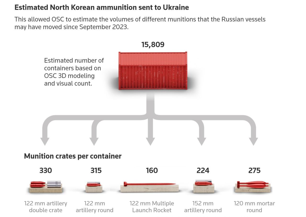 Агентство Reuters опубликовало результаты тщательного расследования, в ходе которого британская исследовательская организация Open Source Centre (OSC) пыталась определить, сколько же снарядов Северная Корея поставила России с осени 2023 года.