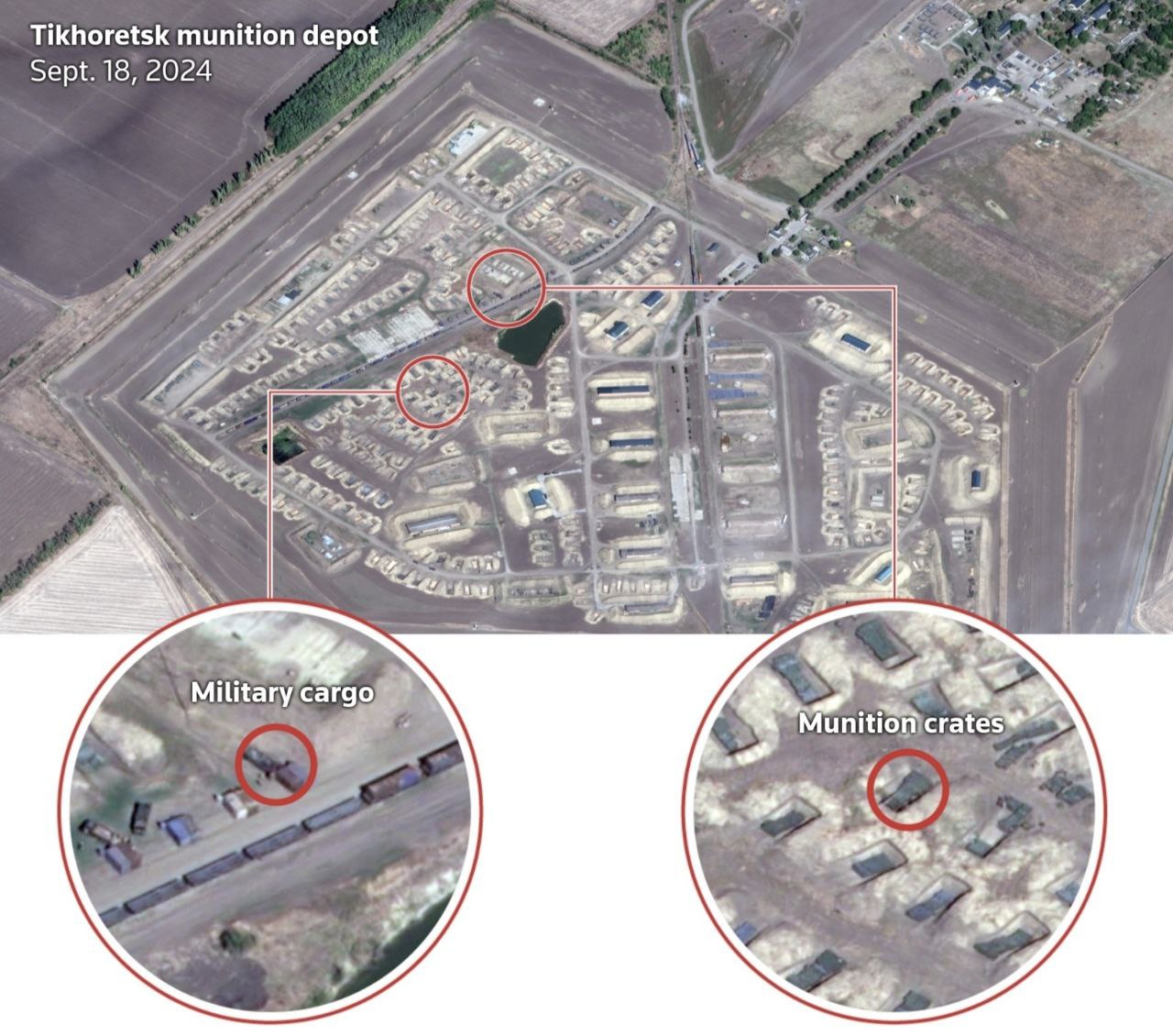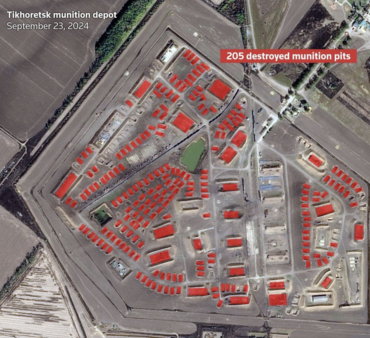 Авторы отмечают, что одним из основных пунктов складирования северокорейских снарядов был арсенал в Тихорецке, на территории которого ещё в конце лета 2023 года было проведено расширение хранилищ. В сентябре 2024-го украинцы нанесли по этому арсеналу удар дальнобойными дронами, в результате чего, по данным западных СМИ и спутниковых снимков, 90% склада выгорело. Утверждается, что та операция почти полностью уничтожила одну из северокорейских поставок. Отметим, что согласно недавней публикации The New York Times, тот удар планировался при непосредственном участии сотрудников ЦРУ и американских военных, а согласование плана атаки и распределение целей велось через штаб в Висбадене.