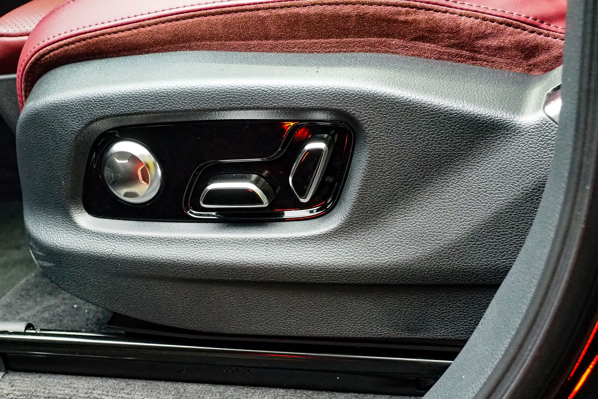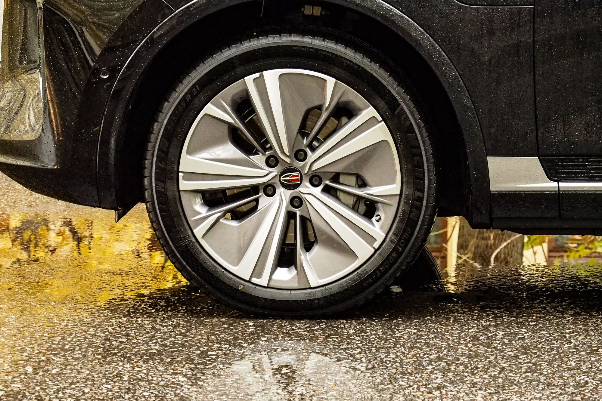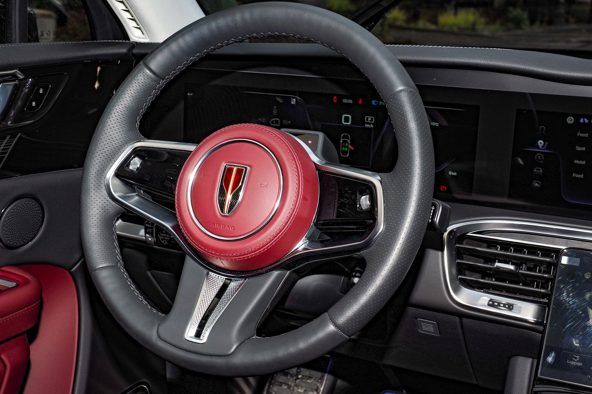 А внешне E-HS9 очень хорош, хотя и несколько противоречив. С передних ракурсов это сама монументальность и пафос, воплощенные в металле, и сзади он весьма эффектен: сплошная лента светодиодных огней, пересекающая пятую дверь, делает автомобиль зрительно еще шире, хотя, казалось бы, куда уж шире, 2010 мм! Кстати, к этой ширине нужно привыкать. Поначалу кажется, что эта машина шире любой нанесенной полосы, хотя на самом деле это не так. И маневрировать непросто, но тут, по счастью, с места водителя прекрасно видно правый угол капота. И 3110 мм колесной базы вкупе с кузовом длиной 5209 мм тоже нужно учитывать, особенно при маневрах в стесненном пространстве, иначе проще простого зацепить задней частью машины какой-нибудь столбик или иное препятствие. Но именно эти габариты придают профилю кроссовера такую элегантность и динамичность. Да, шеф-дизайнер Джайлс Тейлор, которого Hongqi переманила из Rolls-Royce, проделал просто отличную работу.