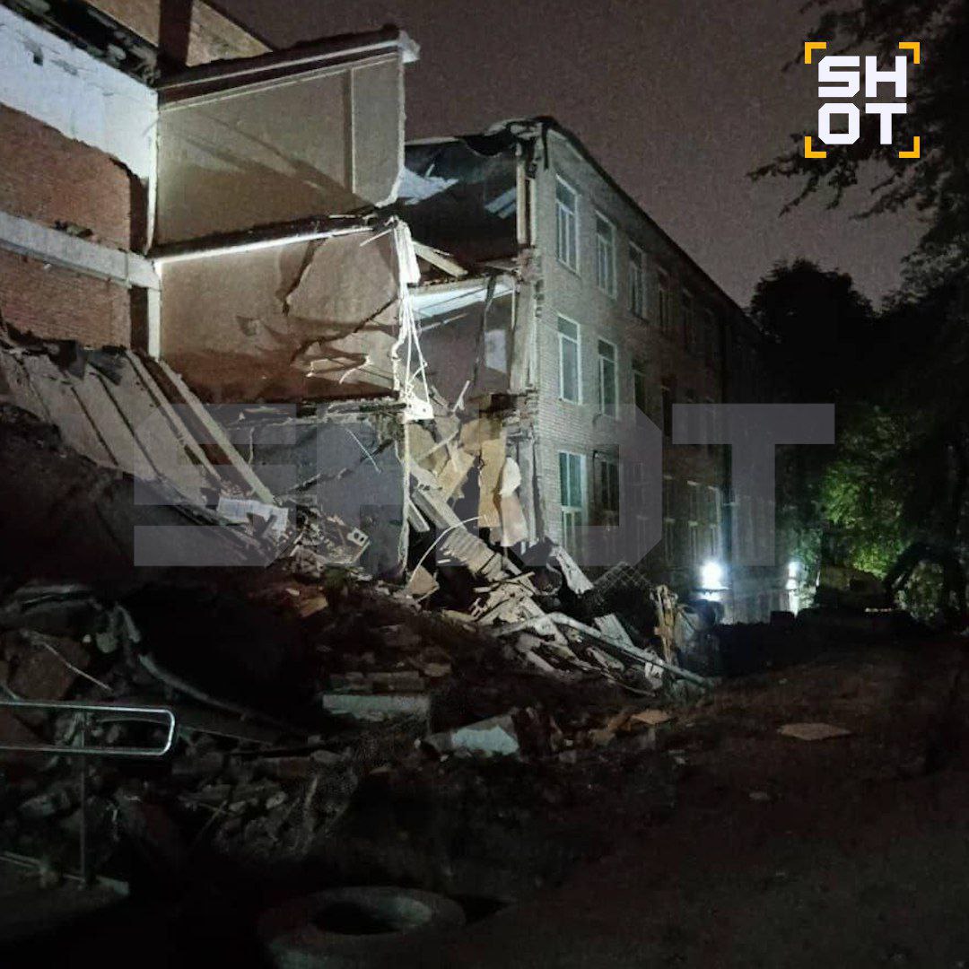 По информации SHOT, сегодня около 6 утра на улице Борисенко рухнуло здание Промышленного колледжа энергетики и связи. На кадрах видно, что обвалились сразу все три этажа, на месте сейчас работают экстренные службы.