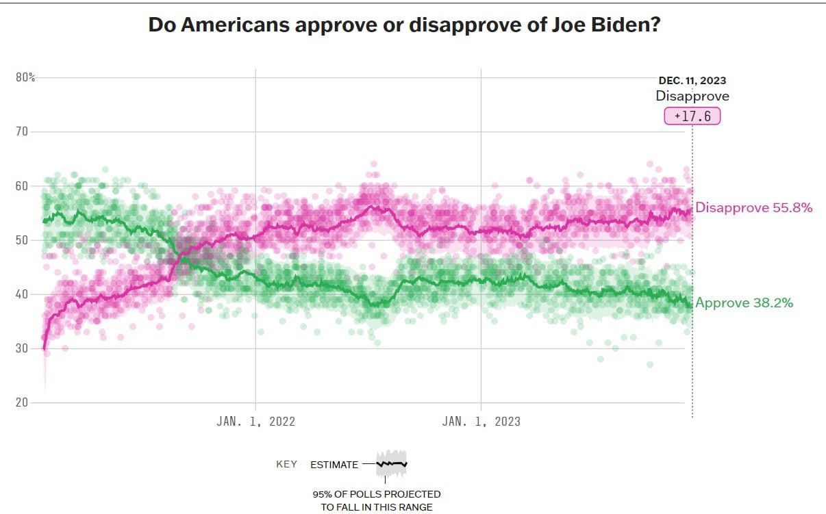 Π‘Π΅ΠΉΡΠ°Ρ Π΄Π΅ΡΡΠ΅Π»ΡΠ½ΠΎΡΡΡ ΠΏΡΠ΅Π·ΠΈΠ΄Π΅Π½ΡΠ° ΠΎΠ΄ΠΎΠ±ΡΡΡΡ 37,7% Π°ΠΌΠ΅ΡΠΈΠΊΠ°Π½ΡΠ΅Π² β ΠΊΠ°ΠΊ ΠΏΠΈΡΠ΅Ρ ABC News, ΡΡΠΎ ΡΠ°ΠΌΡΠΉ Π½ΠΈΠ·ΠΊΠΈΠΉ ΠΏΠΎΠΊΠ°Π·Π°ΡΠ΅Π»Ρ Π·Π° Π²ΡΠ΅ Π²ΡΠ΅ΠΌΡ Π΅Π³ΠΎ Π½Π°Ρ ΠΎΠΆΠ΄Π΅Π½ΠΈΡ Π½Π° ΠΏΠΎΡΡΡ. Π’Π°ΠΊΠΆΠ΅ ΡΡΠΎ ΡΠ°ΠΌΡΠΉ Π½ΠΈΠ·ΠΊΠΈΠΉ ΡΠ΅ΠΉΡΠΈΠ½Π³ Π·Π° Π²ΡΡ ΠΈΡΡΠΎΡΠΈΡ Π‘Π¨Π ΡΡΠ΅Π΄ΠΈ ΠΏΡΠ΅Π·ΠΈΠ΄Π΅Π½ΡΠΎΠ², ΠΏΡΠΎΠ±ΡΠ²ΡΠΈΡ Π½Π° ΠΏΠΎΡΡΡ ΡΡΠΎΠ»ΡΠΊΠΎ ΠΆΠ΅, ΡΠΊΠΎΠ»ΡΠΊΠΎ ΠΈ ΠΠ°ΠΉΠ΄Π΅Π½ β 35 ΠΌΠ΅ΡΡΡΠ΅Π².
