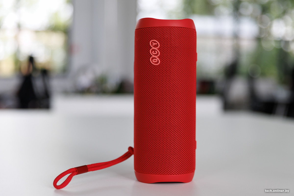 Мощность QCY SP7 — 40 Вт. Внутри разместили двойной низкочастотный динамик для дополнительных басов, высокочастотный динамик с шелковым куполом на 10 Вт и среднечастотный динамик на 30 Вт. Частотный диапазон колонки — 90—20 000 Гц, и глобально все это дело звучит складно. Особенно ярким и чистым звук кажется на 60—80% громкости: на пике появляется легкая «грязь», выдающая ценник девайса.