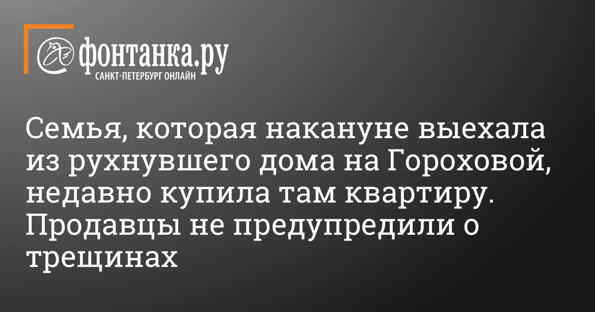 Семья Яйнович, которая до последнего не хотела уезжать из дома 73 по Гороховой улице, купила там квартиру в 2021 году. Как 20 декабря рассказал «Фонтанке» их представитель, юрист Сергей Тверски, прежние владельцы не рассказали о том, что соседи уже несколько лет жаловались на трещины.