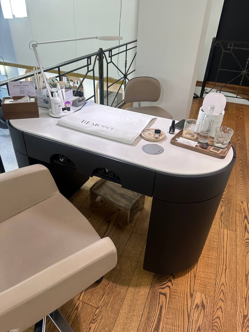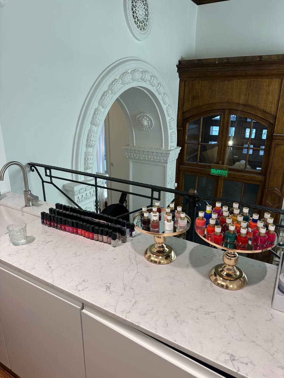 💍Маникюр делали на втором уровне в общем зале. Но каждая гостья была отделена друг от друга колонной так, что создавалось ощущение приватности. При этом Люба наблюдала за залом со стилистами. Днем буднего дня стрижки делали, в основном, мужчины. Такие причем на вид крепкие гетеросексуальные русичи. Вот, где надо искать жениха.