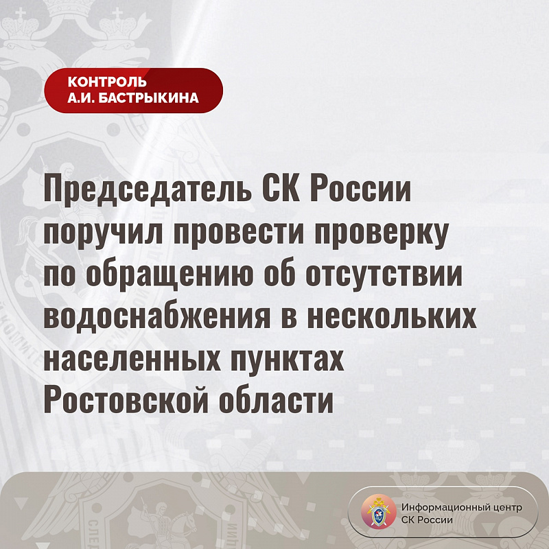 Глава Следкома поручил провести проверку по обращению об отсутствии водоснабжения в нескольких донских населенных пунктах