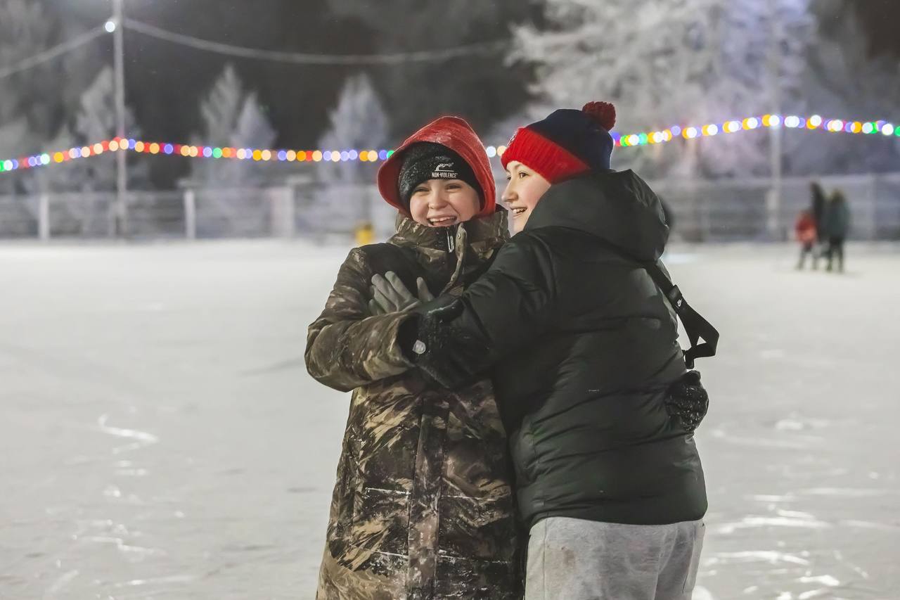 Из-за сильного ветра рабочие не могут очистить ледовую площадку. А заливать лед новым слоем поверх снега нельзя, пояснили в Татышев-парке.