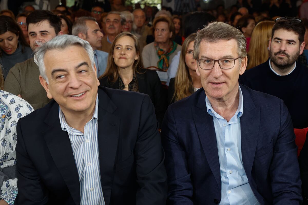 La única referencia velada de Feijóo a la banda aparece al principio, después de felicitarse de que Euskadi viva hoy en “libertad”. El líder del PP recuerda que “algunos dieron la vida por la libertad” mientras “otros intentaron segar, y lo consiguieron, la vida de otros”. Esa misma tarde ha muerto el exlehendakari José Antonio Ardanza, promotor en 1988 del Pacto de Ajuria Enea contra la violencia de ETA, y De Andrés, candidato popular a la lehendakaritza, aprovecha para reivindicar que el político del PNV contribuyó a definir un “suelo ético respecto de una formación que no respetaba la vida, que no respetaba a las personas y a la libertad”. Tampoco él cita de forma explícita a EH Bildu ni a ETA. Hasta ahí las alusiones al terrorismo y las críticas a la coalición abertzale, una fuerza política que los populares demonizan en Madrid identificándola permanentemente con ETA.