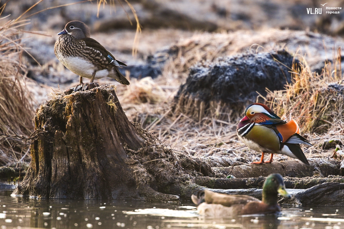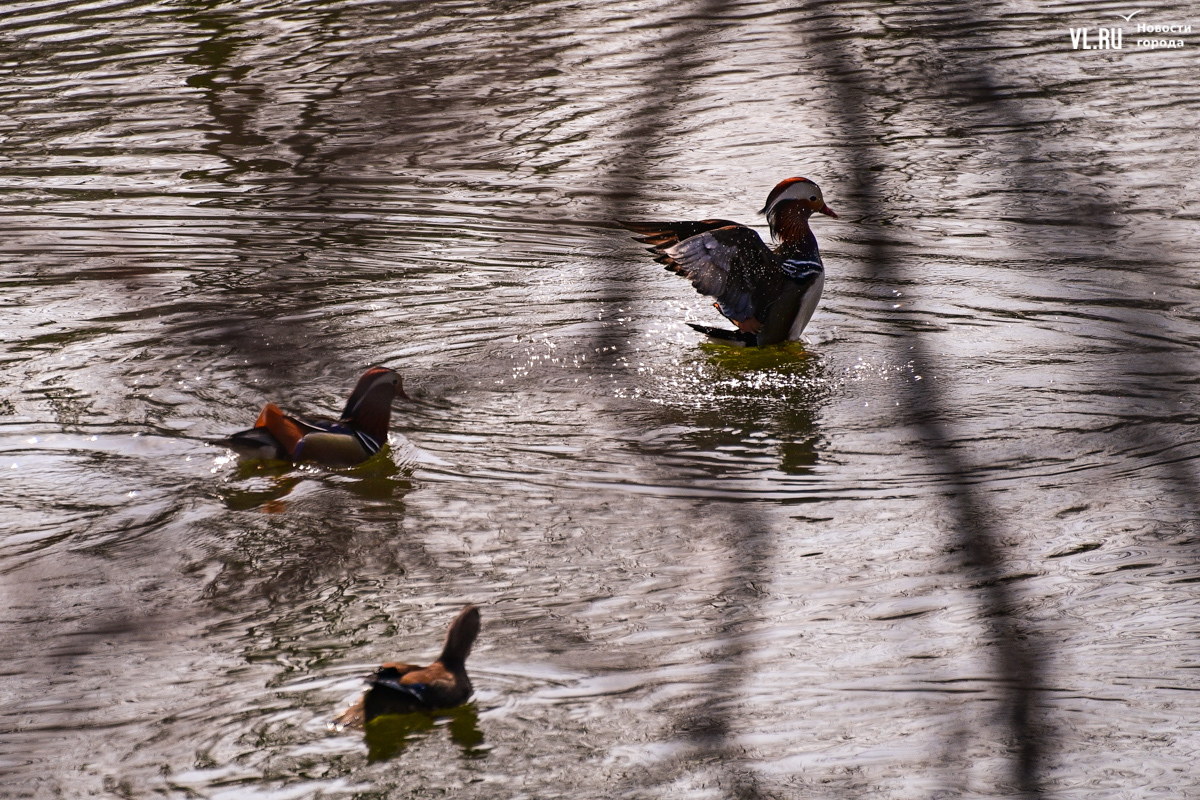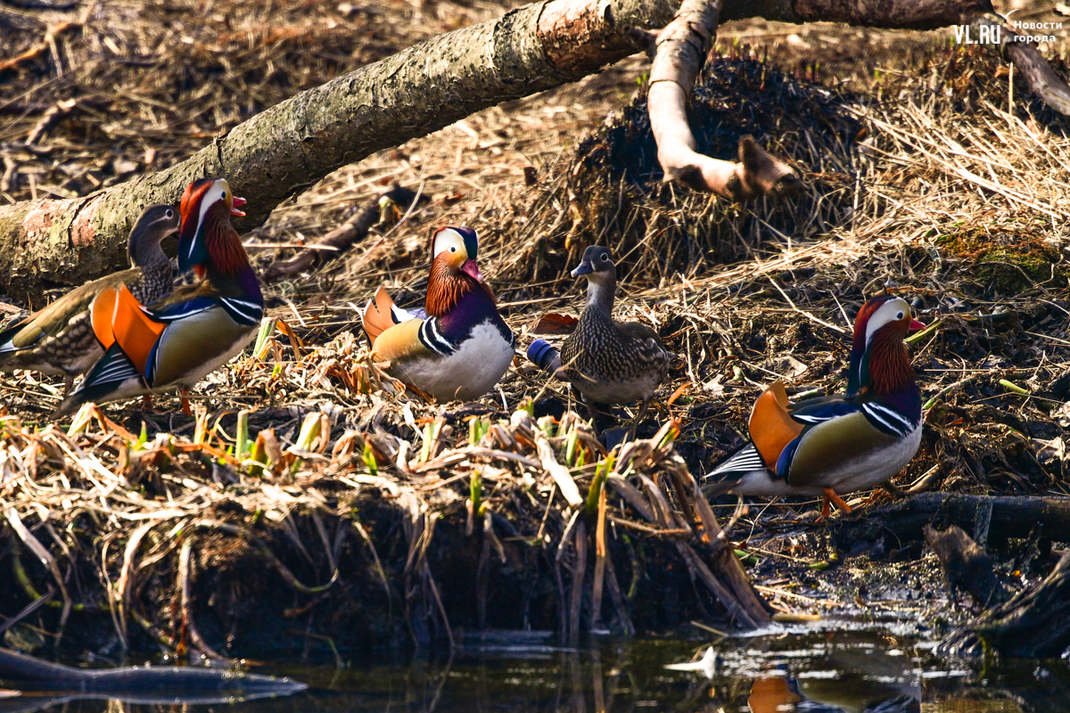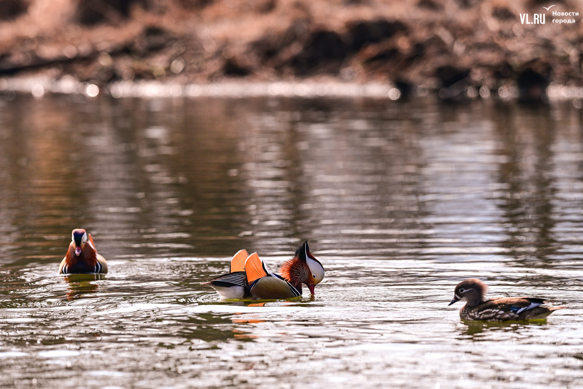 Весна вступает в свои права, и в пригороде Владивостока на освободившейся ото льда поверхности Солёной протоки вновь появляются яркие пятнышки, которые издалека можно принять за экзотические цветы. Это вернулись с зимовки любимые горожанами утки-мандаринки, краснокнижные птицы, гордость дальневосточной природы.