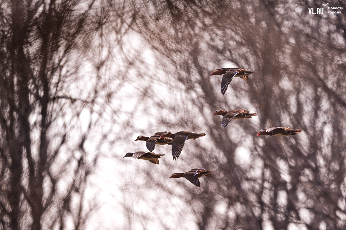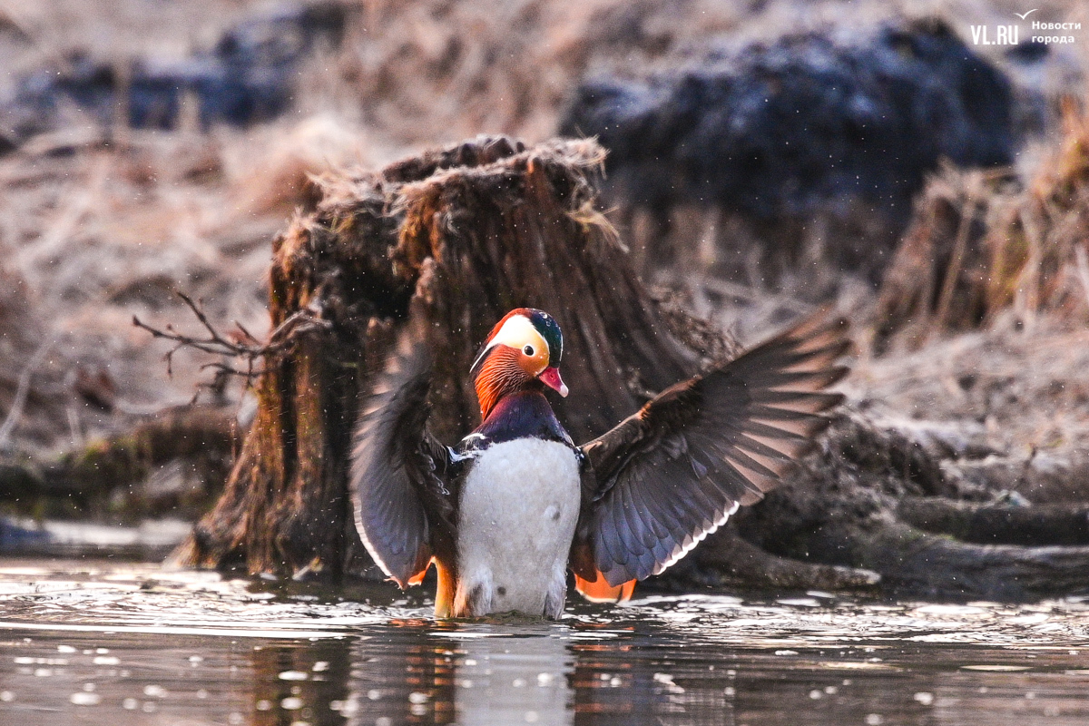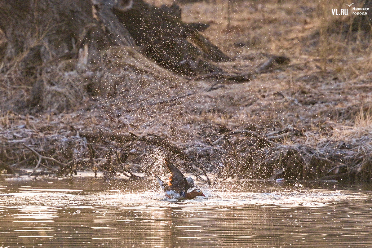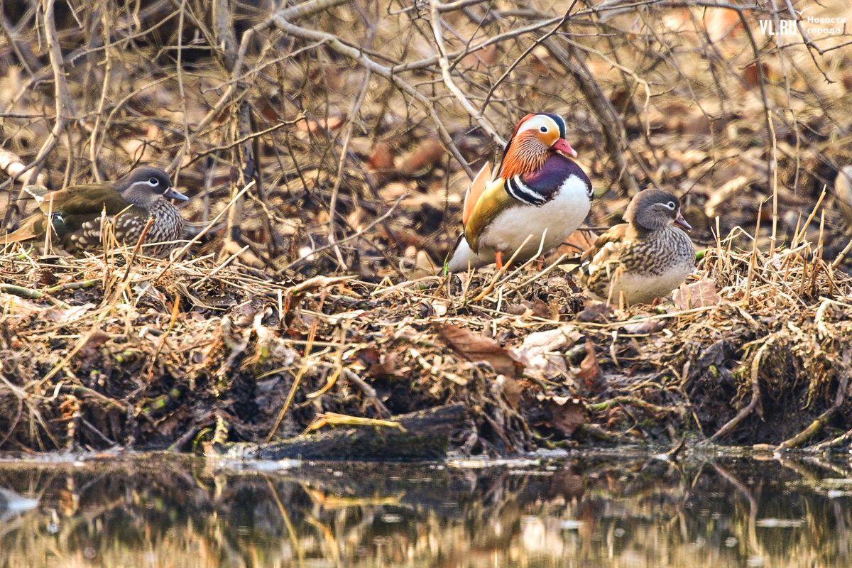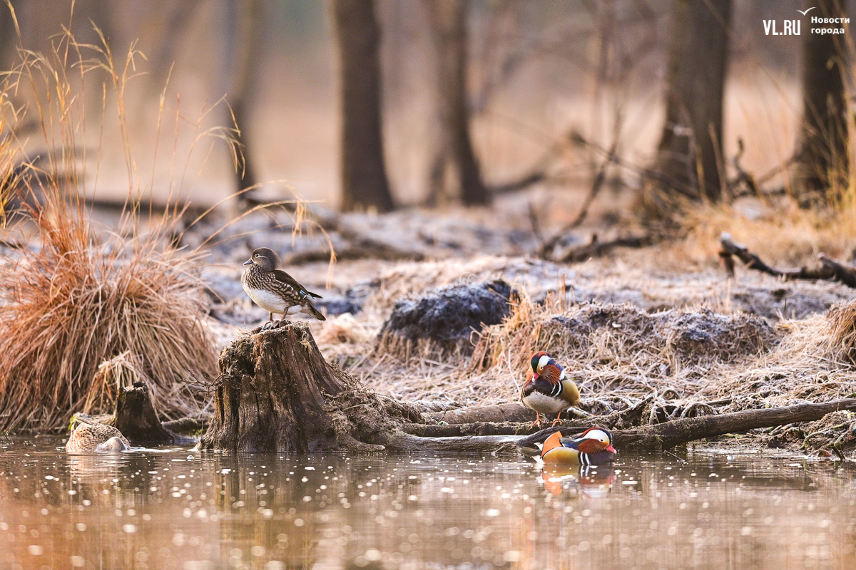 Весна вступает в свои права, и в пригороде Владивостока на освободившейся ото льда поверхности Солёной протоки вновь появляются яркие пятнышки, которые издалека можно принять за экзотические цветы. Это вернулись с зимовки любимые горожанами утки-мандаринки, краснокнижные птицы, гордость дальневосточной природы.