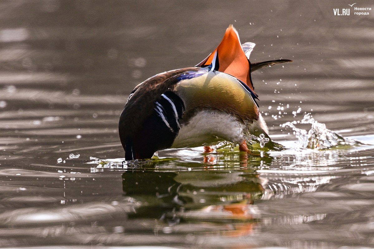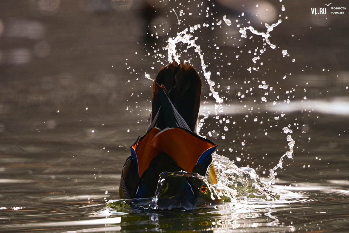 Почему мандаринки выбрали Солёную протоку в качестве своего излюбленного места, не очень понятно. Здесь много людей и немало мусора. Но обычно пугливых уток это соседство почему-то не пугает. А местные жители и туристы подкармливают этих птиц. До конца октября пернатые красавцы будут радовать нас своим присутствием, даря незабываемые моменты природной красоты.