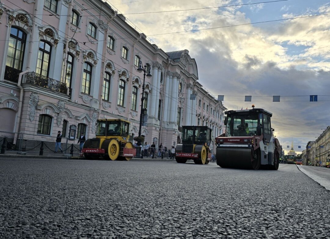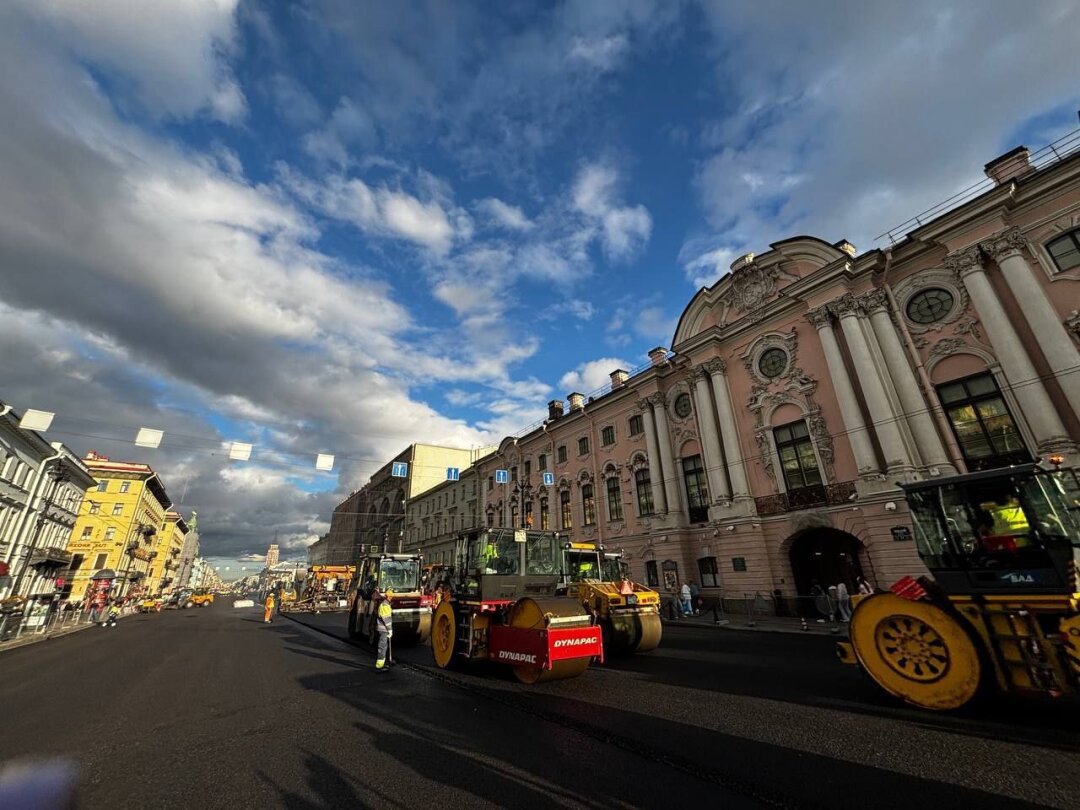 К 13:00 17 августа уже уложили верхний слой асфальта на участке от набережной реки Мойки до Садовой улицы.