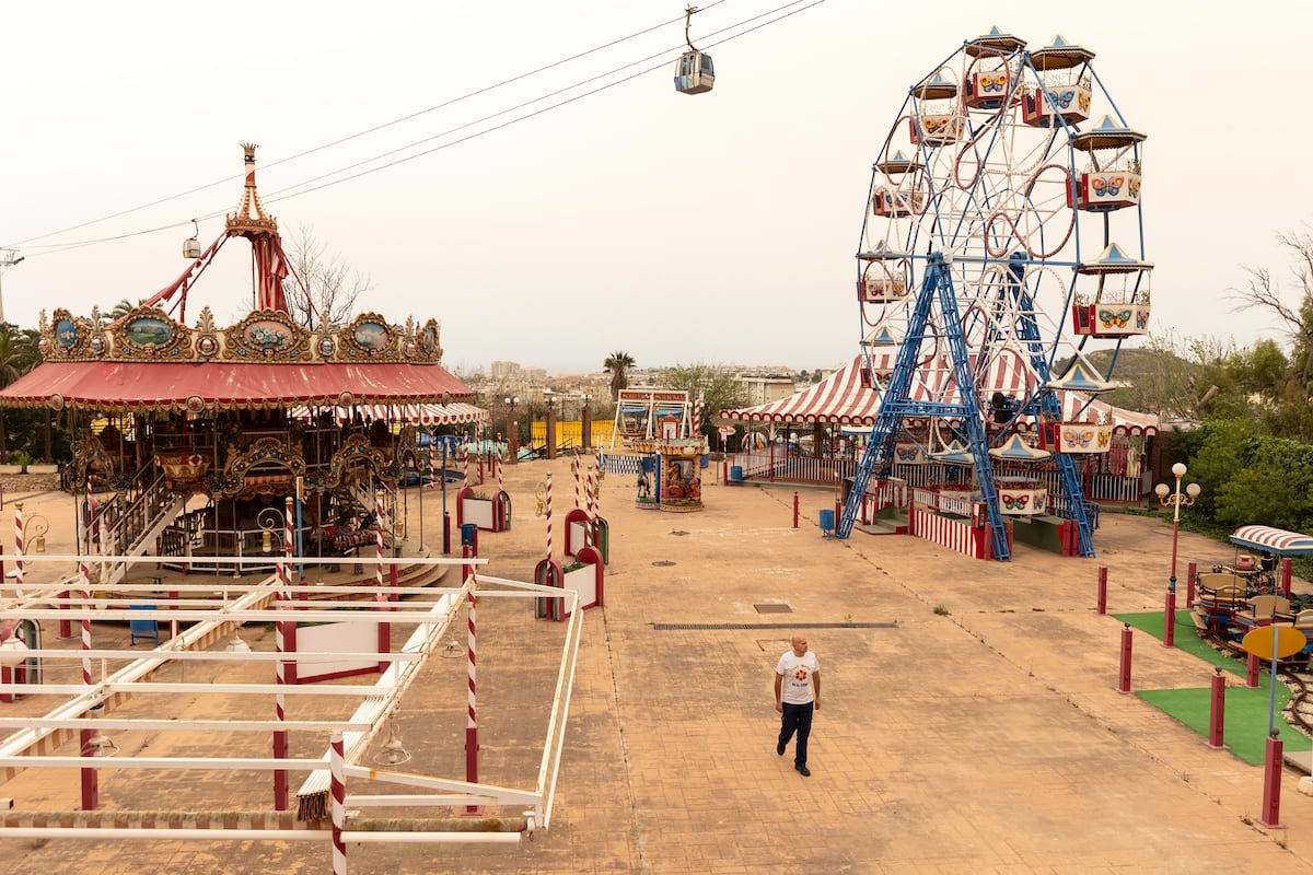Juan Carmona vive entre pistas de coches de choque, una montaña rusa, la noria y el pasaje del terror. Tiene 54 años y desde 2021 reside en el parque de atracciones Tívoli World, en Benalmádena (Málaga). Cada día camina por sus 65.000 metros cuadrados, que parecen una imagen congelada de lo que una vez fue el lugar más divertido de la Costa del Sol. Le acompaña el silencio, que sustituye a las risas que invadieron durante décadas el recinto. La presencia de Carmona las 24 horas del día es fundamental para la supervivencia de las instalaciones, camino de su cuarto año clausuradas. También es vital el apoyo de buena parte de los 80 trabajadores que tenía el parque cuando suspendió su actividad: organizan turnos de seguridad, mantienen el recinto y se citan cada mañana a las 12.00 para hacerse una foto reivindicativa. El objetivo es claro: “Nuestra mayor ilusión es que Tívoli vuelva a abrir”, afirma Carmona, que empezó a trabajar aquí en 1988 y ha visto pasar a buena parte de los 35 millones de personas que han disfrutado de este fantástico rincón.