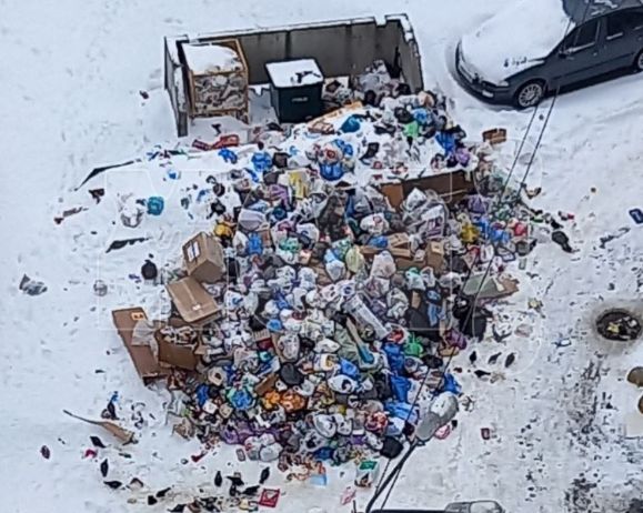«УК с наступлением зимы впали в спячку? Убирать снег неделю силами жильцов уже в порядке вещей. Но уж за неделю мусор можно было вывезти? Огромные свалки возле каждого подъезда. Всё заметает снегом, тает, воняет, леденеет и снова по кругу. Антисанитария!» — возмущается горожанка.