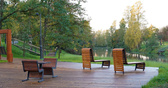 В рамках комплексного проекта по благоустройству у реки установили шезлонги, перголы с качелями, проложили новые дорожки из булыжника и террасной доски. Одну из детских площадок решили назвать «Госавтоинспекция» и оформить в соответствующей стилистике, поскольку недалеко, на шоссе Революции, находится МРЭО ГИБДД.