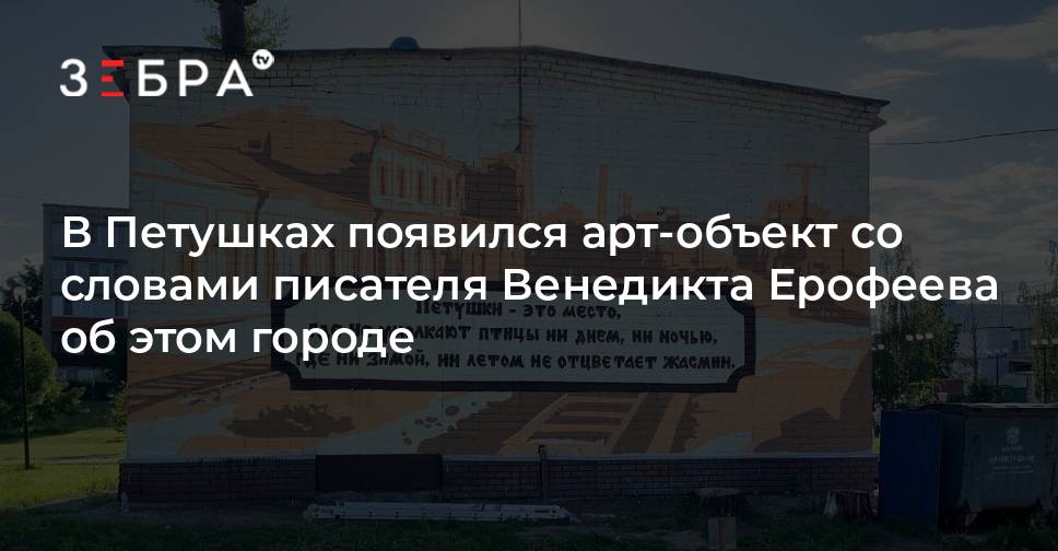 Художники украсили торец кирпичного здания канализационно-насосной станции изображением петушинского железнодорожного вокзала и знаменитой цитатой из главы «Реутово-Никольское» поэмы в прозе писателя Венедикта Ерофеева «Москва-Петушки».