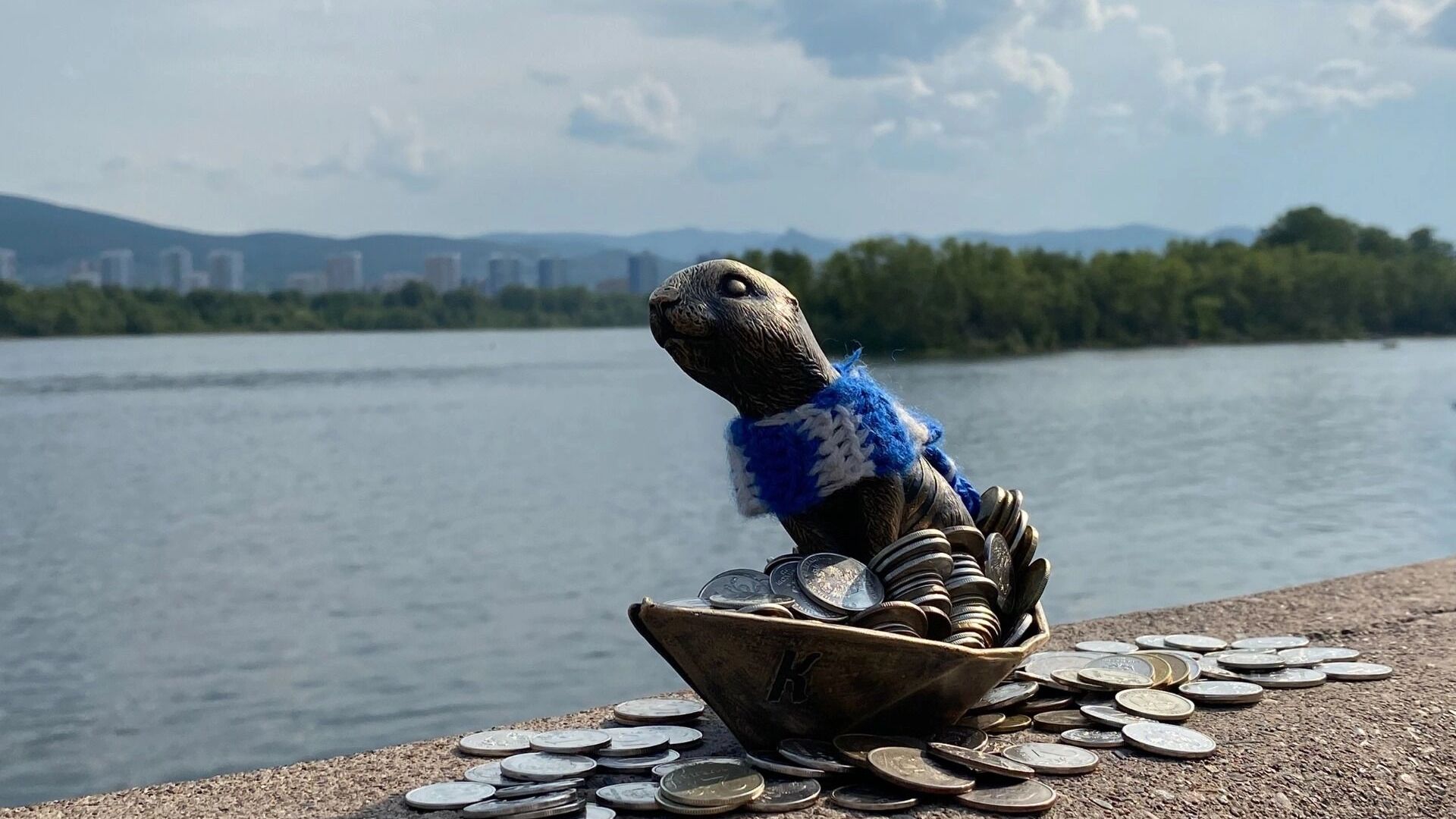 У красноярцев, судя по всему, появилась новая традиция. Горожане оставляют монетки у фигурки суслика. Красноярцы считают, что суслик исполняет желания.