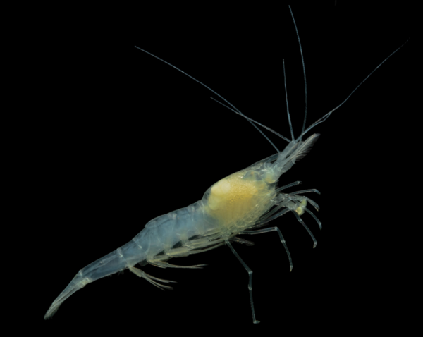 Безглазая троглобитная креветка обитает в водоёмах пещер штата Кентукки. Из-за отсутствия пигмента практически прозрачная и выглядит как призрак. Пределы пещер креветка не покидает, поскольку всё, что ей нужно для питания и жизни - грибы, водоросли, мелкая органика содержится в осадках, намываемых в пещеру грунтовыми водами.