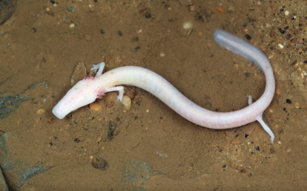 Зачем таскать на себе глаза, если они в жизни не нужны? Техасская слепая саламандра в ходе эволюции рассуждала примерно так. И в итоге избавилась от ненужного органа, надёжно спрятав в глубины шкурки. С поиском пищи саламандра отлично справляется на ощупь (улитки не особенно стремительны, поэтому проблем нет), а партнёров для размножения подыскивает по запаху.