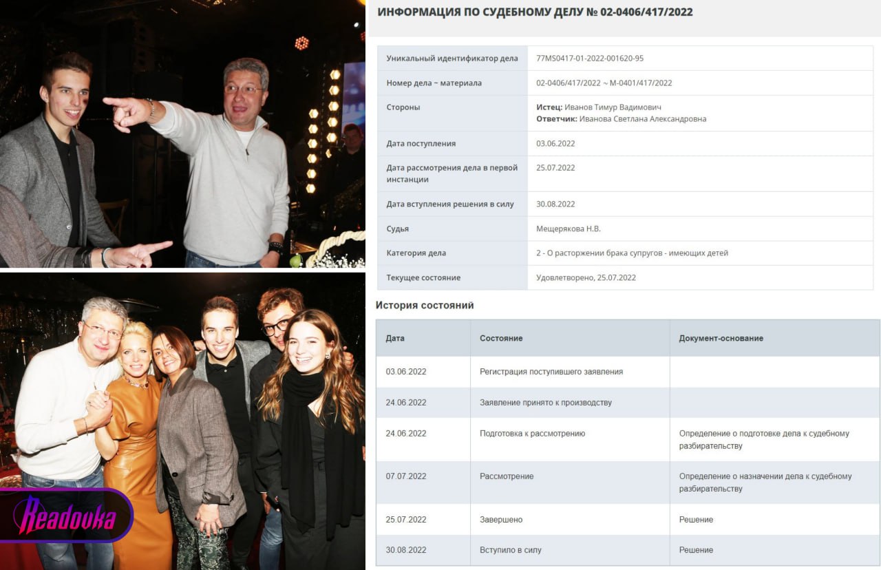 Особого внимания заслуживает вторая жена замминистра, Светлана Александровна Иванова, предприниматель и владелица «Metropol Fashion Group». Как выяснила Readovka, бизнес-вумен не попала под санкции ЕС, так как поразительно вовремя фиктивно развелась с Тимуром Ивановым — в июне 2022 года, по сути сразу после начала спецоперации и угрозы попадания под санкции. Кроме того, известно, что Светлана имеет гражданство Израиля, а ее дети от первого брака давно не живут в России — пасынок Иванова Михаил сбежал из России в Англию «учиться» за несколько дней до начала мобилизации, а падчерица живет во Франции.