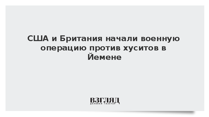 Как сообщил телеканал, началась американо-британская военная операция против объектов хуситов, передает РИА «Новости». Там добавили, что удар, в частности, нанесен по окрестностям порта Ходейда. Также они добавили, что пять авиаударов пришлось на объекты хуситов к востоку от Ходейды.