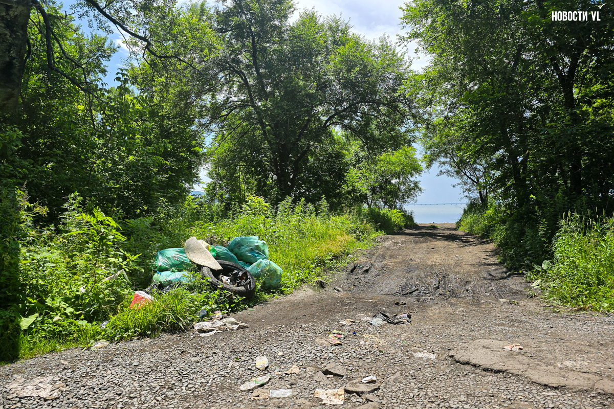 На Океанской, кстати, тоже есть свой шашлычный закуток – прямо под вывеской «Отдохнул? Убери за собой!» Видны остатки костров, а в покрышках тут же можно найти мусорные тайники – с пакетами из-под чипсов и бутылками газировки.