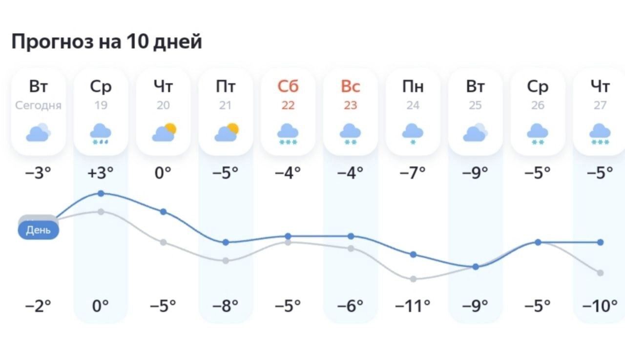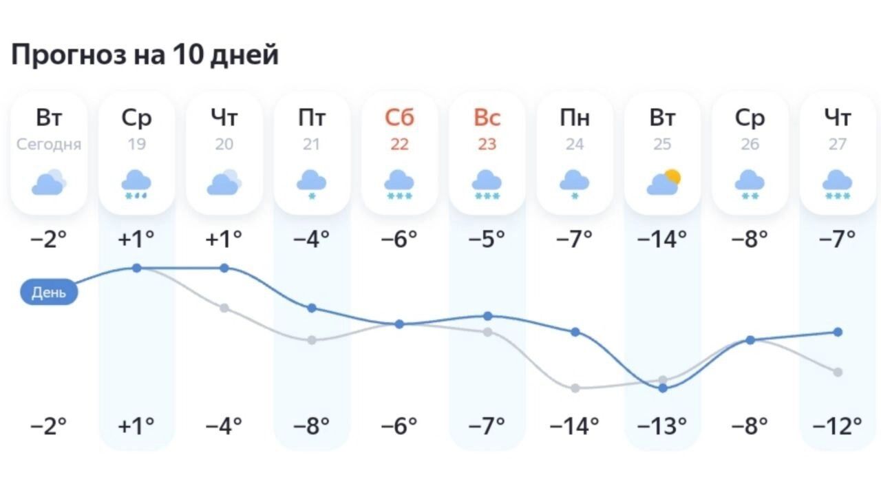 Выходные возможно будут немного теплее конца рабочей недели — как минимум в крупных городах Югры. Там синоптики «Яндекс.Погоды» обещают максимальный минус на уровне 6-7 градусов. При этом будет довольно много осадков.