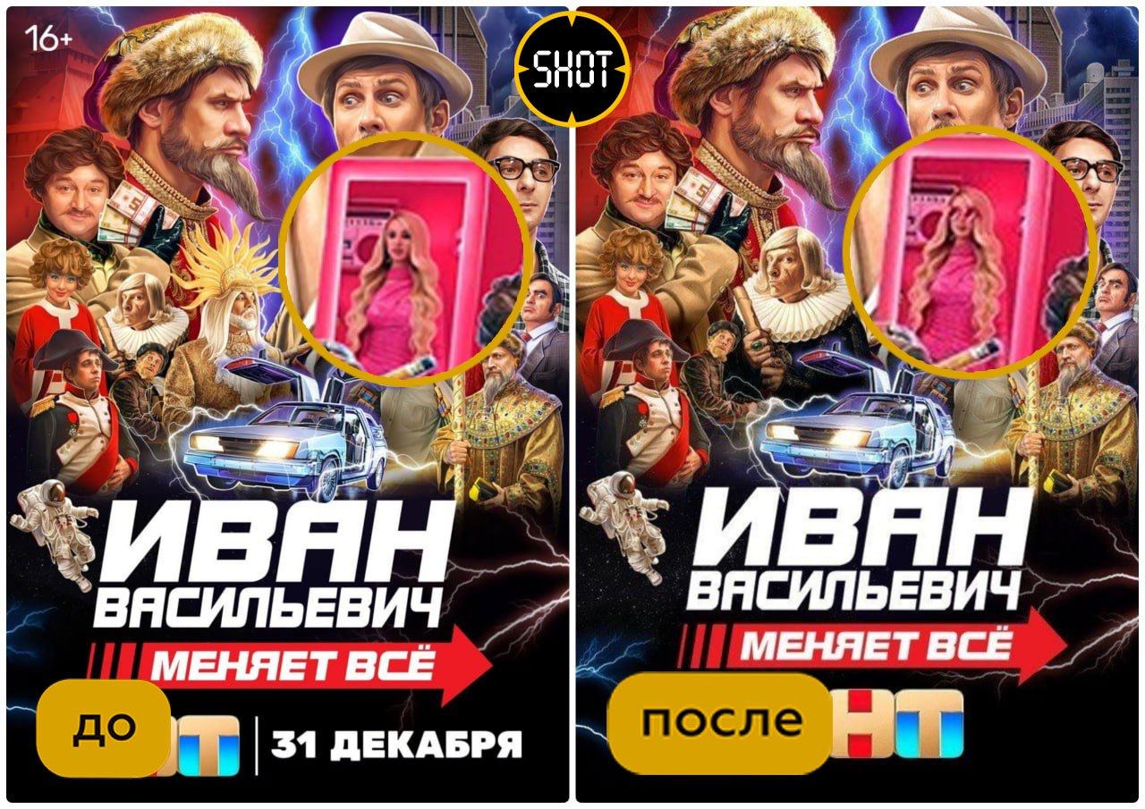 Изначально на афише комедии "Иван Васильевич меняет всё" был Киркоров, теперь же вместо него там красуется комик Павел Воля. Чуть больше повезло певице Анне Асти — ей просто "надели" очки и не стали убирать её с постера. При этом, останутся ли Киркоров и Асти в самой картине, неизвестно.