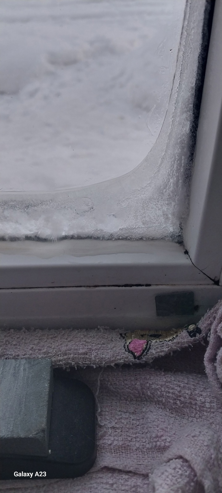 Горожане поделились фотографиями своих замерзших окон, на которых видно, что лед разрастается по подоконникам и снижает температуру и без того холодных квартир.