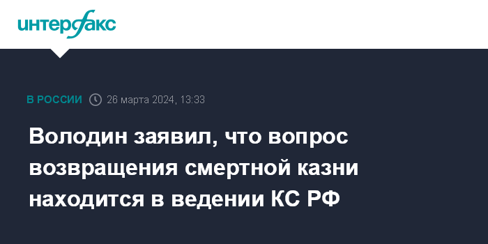Москва. 26 марта. INTERFAX.RU - Председатель Госдумы Вячеслав Володин заявил о наличии в российском законодательстве норм о смертной казни, но все решения, по его словам, должен принимать Конституционный суд РФ.