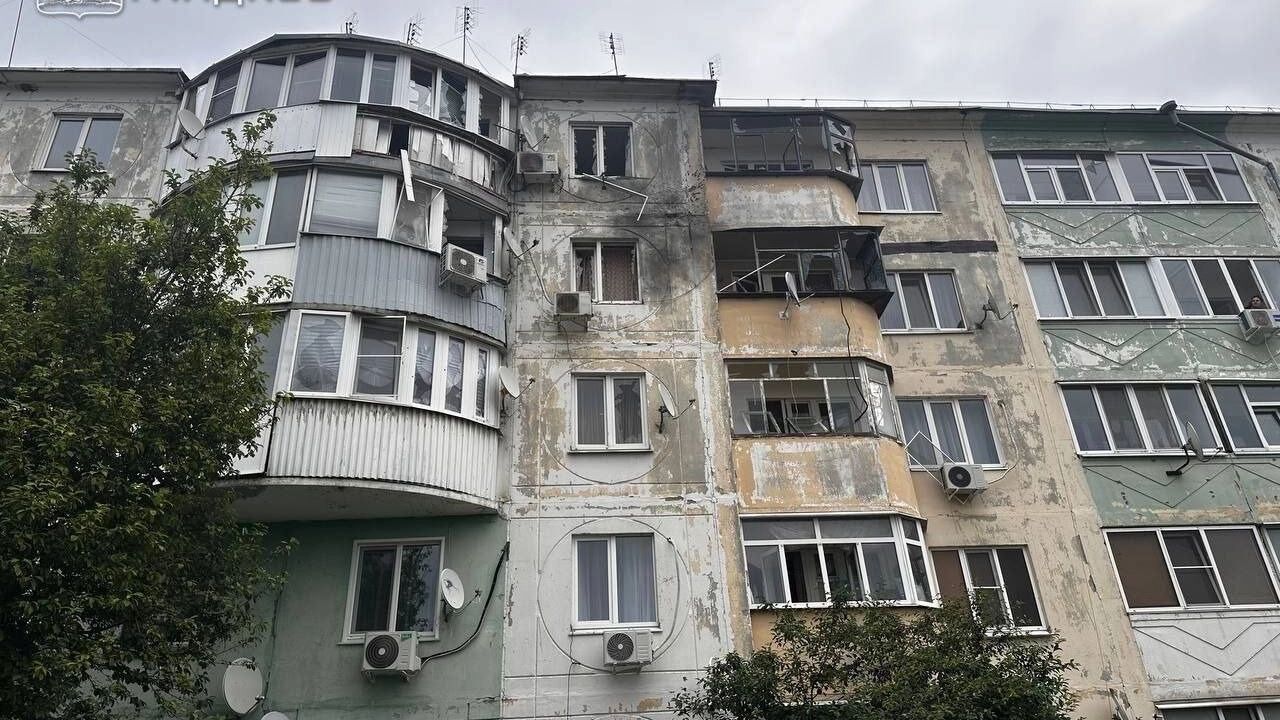 В результате атаки были повреждены фасад многоквартирного дома и остекление. Осколками был повреждён легковой автомобиль.