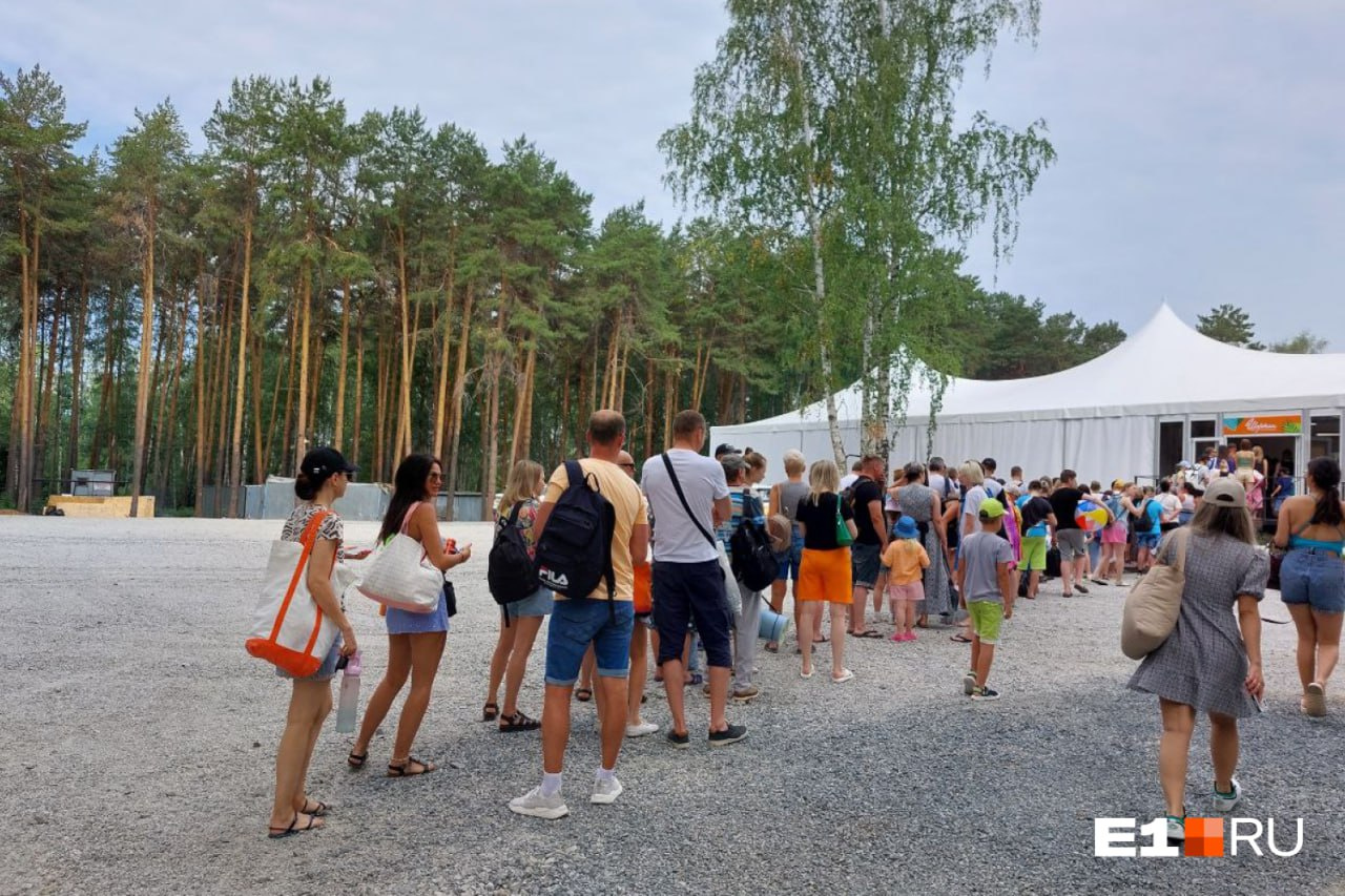 А вот очередь, которая выстроилась перед «Шарташ Пляжем». На парковке уже утром не осталось свободных мест.