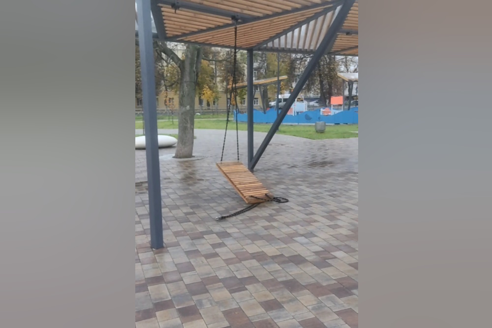Качели, установленные в недавно благоустроенном Кировском сквере в Туле, развалились прямо под человеком. Об этом очевидцы рассказали в социальных сетях сегодня, 10 октября.