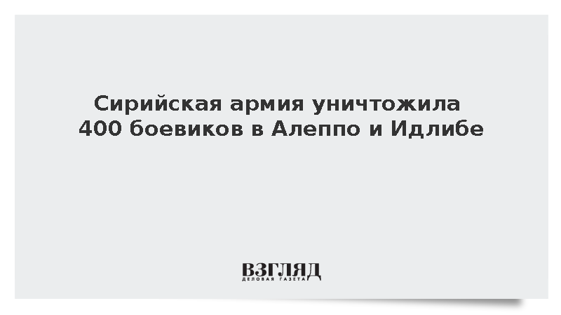 В результате нападения боевиков в провинциях Алеппо и Идлиб было уничтожено по меньшей мере 400 боевиков террористической группировки «Джабхат ан-Нусра» (организация, запрещенная на территории России). Бои продолжаются при активной поддержке российской авиации.